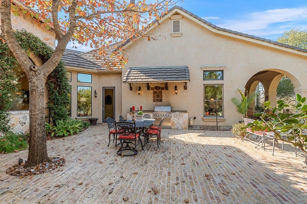 - ExteriorBack Yard,Controlled Subdivision Access,Covered Patio/Deck,Outdoor Fireplace,Outdoor Kitchen,Partially Fenced,Patio/Deck,Satellite Dish,Sprinkler System